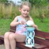 Pastelno obarvani elementi in edinstven mlinček otrokom omogočajo, da raziskujejo delovanje peska in razvijajo svojo ustvarjalnost. Izdelek je razkužen pri 120 °C za dodatno varnost in je primeren za otroke od 3. leta starosti.