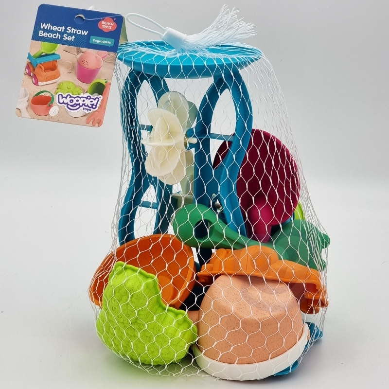 WOOPIE GREEN Komplet za pesek z mlinčkom in kanglico je popolna izbira za trajnostno in ustvarjalno igro na prostem. Komplet vključuje 10 elementov: mlinček, kanglico z ročajem, šest modelčkov, grablje in lopatko. Vsi elementi so izdelani iz organskega materiala na osnovi pšenice, ki je biološko razgradljiv, kompostiren in prijazen okolju.