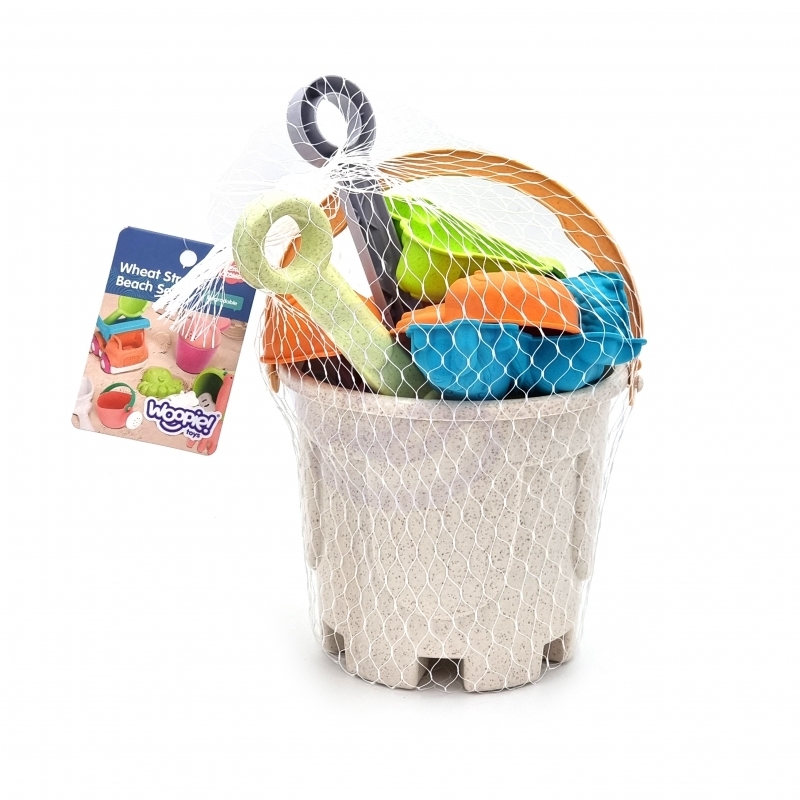 WOOPIE GREEN Komplet za pesek z vedrom in avtomobilčkom je trajnostna in ustvarjalna izbira za igro na prostem. Komplet vključuje 10 elementov: vedro z ročajem, šest modelčkov, grablje, lopatko in avtomobilček. Vsi deli so izdelani iz organskega materiala na osnovi pšenice, ki je biološko razgradljiv in kompostiren, kar podpira varovanje okolja.