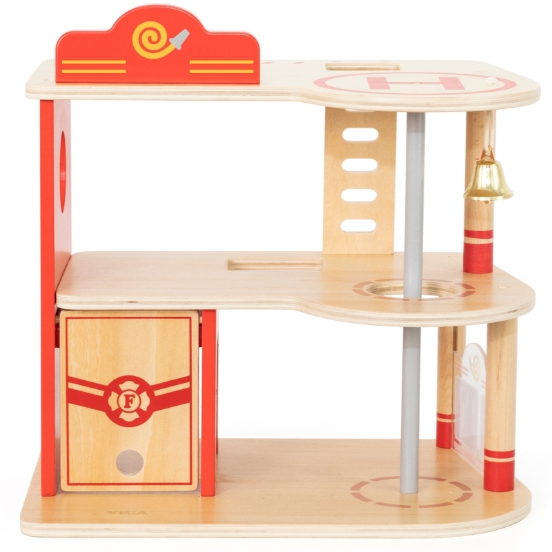 Lesena gasilska postaja za otroke VIGA je bogato opremljen igralni set s tremi nadstropji, vozili in figuricami gasilcev. Omogoča razburljivo igro reševanja, sodelovanja in domišljijskih gasilskih akcij. Celoten opis ↓
