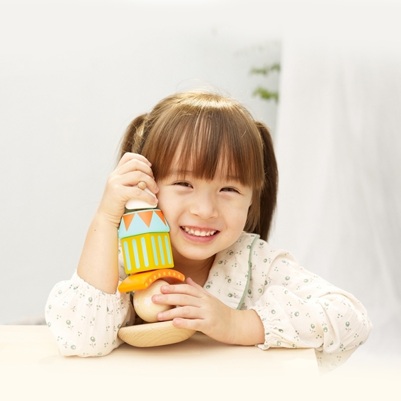 Otroci se skozi igro naučijo prepoznavanja barv in razvijajo koordinacijo rok ter oči. Z veseljem lahko uporabljajo vsak kos tudi posebej za igro, kar spodbuja njihovo domišljijo in raziskovanje. Lesena konstrukcija in pastelne barve, pobarvane z nestrupenimi barvami, zagotavljajo trajnost in varnost.