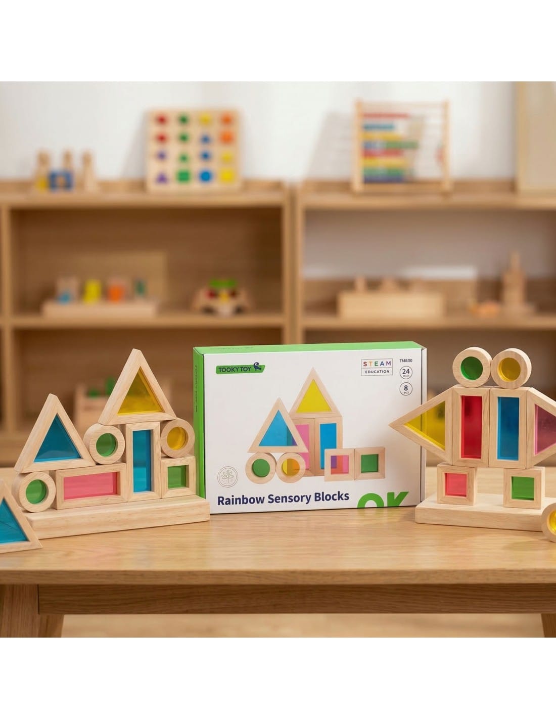 Lesene kocke Tooky Toy z barvnimi ogledali in štirimi različnimi oblikami spodbujajo učenje barv, oblik in logičnega razmišljanja. Popolna STEAM igrača za otroke od 24 mesecev dalje. Celoten opis ↓