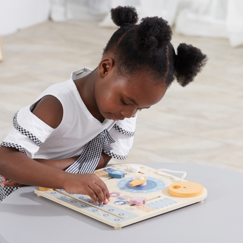 - Razvoj logičnega razmišljanja: Igrača pomaga otrokom razumeti zaporedje dogodkov in časovne pojme.