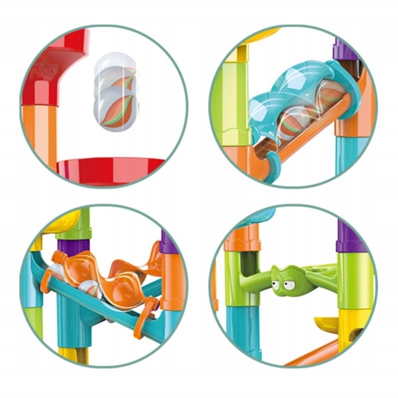 - Vznemirljiva igra opazovanja – Otroci lahko sledijo poti kroglic skozi različne elemente in ovire.
