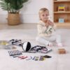 Igra s tem Montessori senzoričnim setom nežno spodbuja razvoj čutil vida, sluha in tipa. Kontrastne kartice in mehke igrače pomagajo novorojenčku postopoma ostriti vid, medtem ko različne teksture razvijajo občutek za dotik.