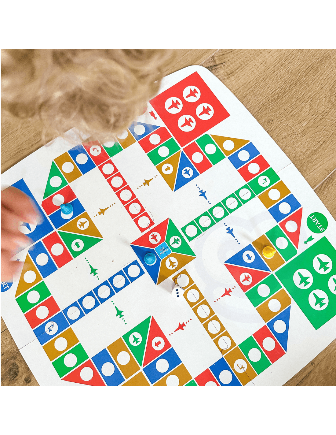 Komplet vsebuje dvostransko igralno ploščo, sestavljeno iz velikih puzzle kosov, ter bogat nabor dodatkov za obe igri. Vse komponente so izdelane iz trpežnih in varnih materialov, primernih za otroško uporabo.