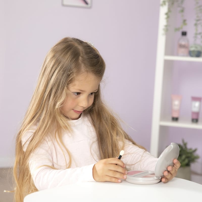 Lepotni komplet za otroke s svetlečim ogledalom, senčili in čopičem. Vsebuje varne, realistične, a neuporabne kozmetične elemente za domišljijsko igro. Celoten opis ↓