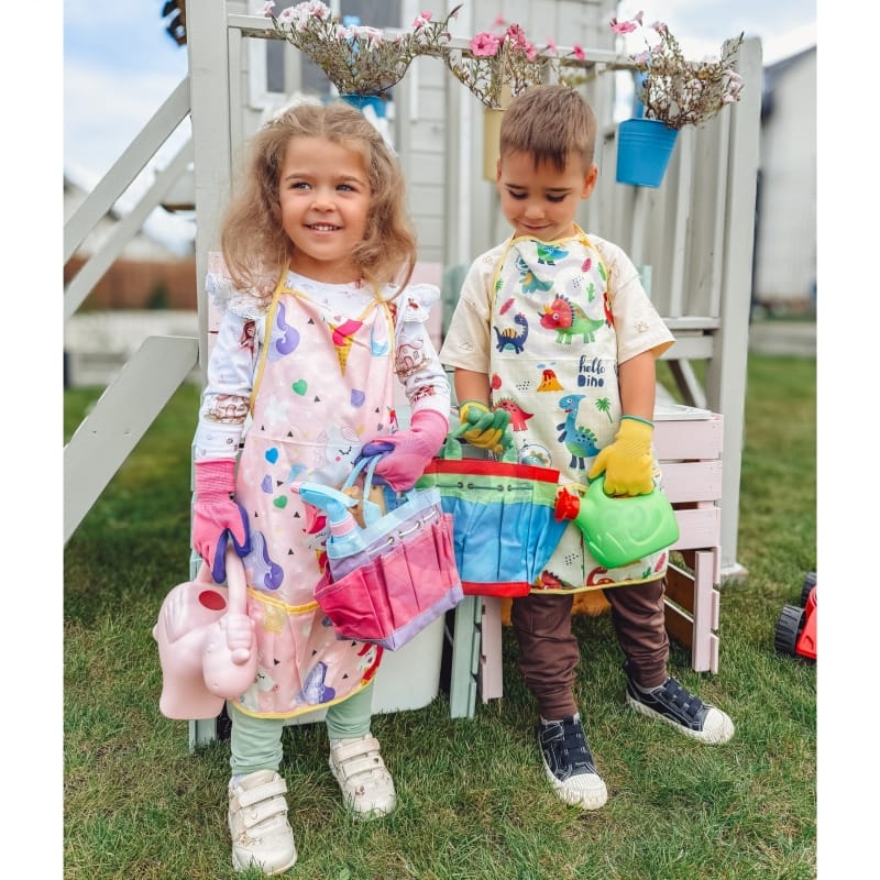 Vesel predpasnik z motivom dinozavrov poskrbi, da je igra še bolj privlačna, hkrati pa ščiti oblačila med ustvarjalnimi opravili. Otroški vrtnarski set z dinozavri spodbuja gibanje na prostem in ponuja odlično alternativo zaslonom. Otroci skozi igro razvijajo pozitiven odnos do narave in se učijo osnovnih življenjskih spretnosti na sproščen in zabaven način.