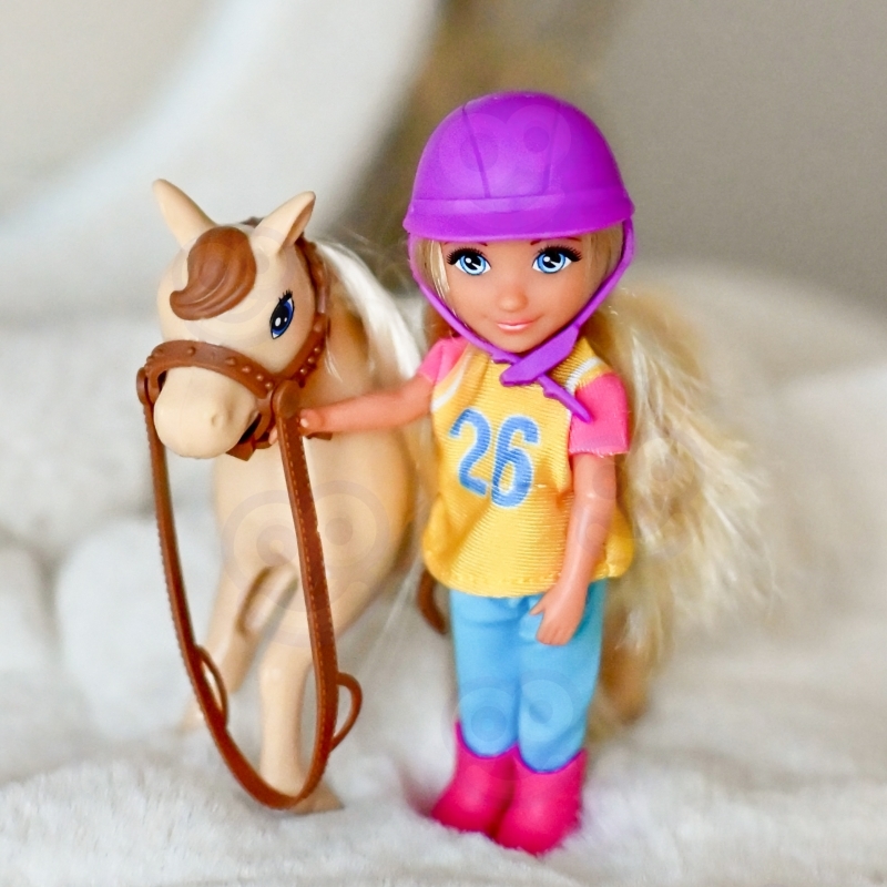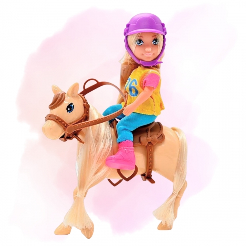 Komplet vsebuje punčko, konja in dodatke, ki omogočajo celovito in raznoliko igro jahanja.