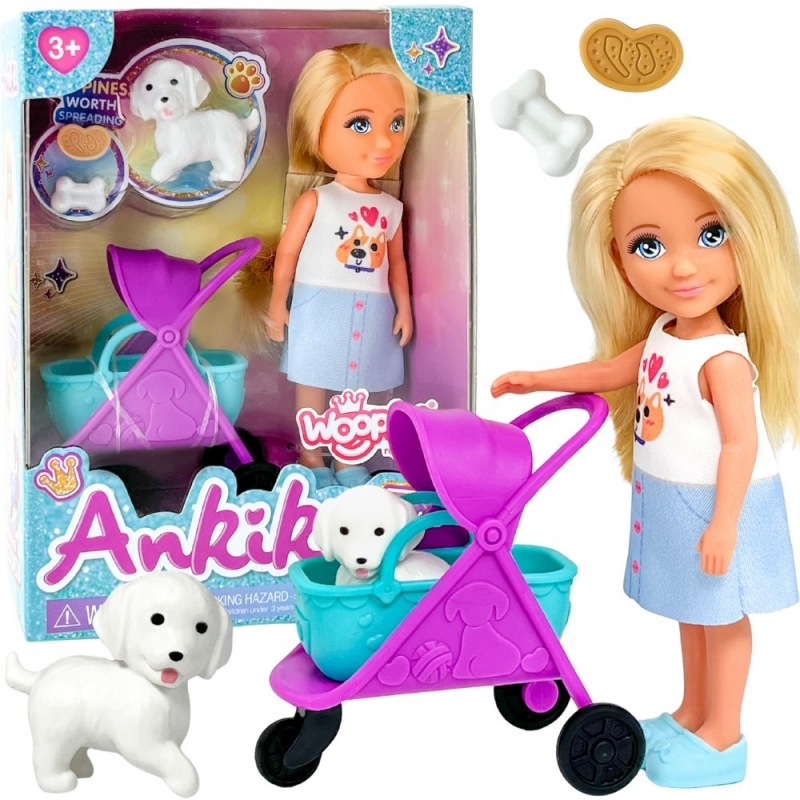 Punčka z vozičkom in kužkom Niki je čudovit komplet za otroke, ki obožujejo živali in igro vlog. Zasnovan je tako, da na prijazen in razumljiv način spodbuja skrb za hišne ljubljenčke ter poustvarjanje vsakodnevnih situacij, kot so sprehodi, hranjenje in igra s kužkom. Punčka Niki je oblečena v moden, poletni komplet, njen prijazen videz pa hitro pritegne otrokovo pozornost in povabi k dolgotrajni igri.
