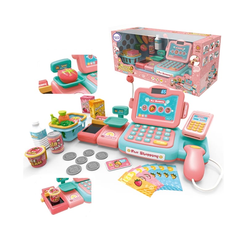 Blagajna je opremljena z zvočnimi efekti, skenerjem za izdelke, delujočo tipkovnico in mikrofonom za komunikacijo. Terminal omogoča simulacijo plačilnih transakcij, otroci pa lahko izdelke zlagajo v priloženo nakupovalno košarico.