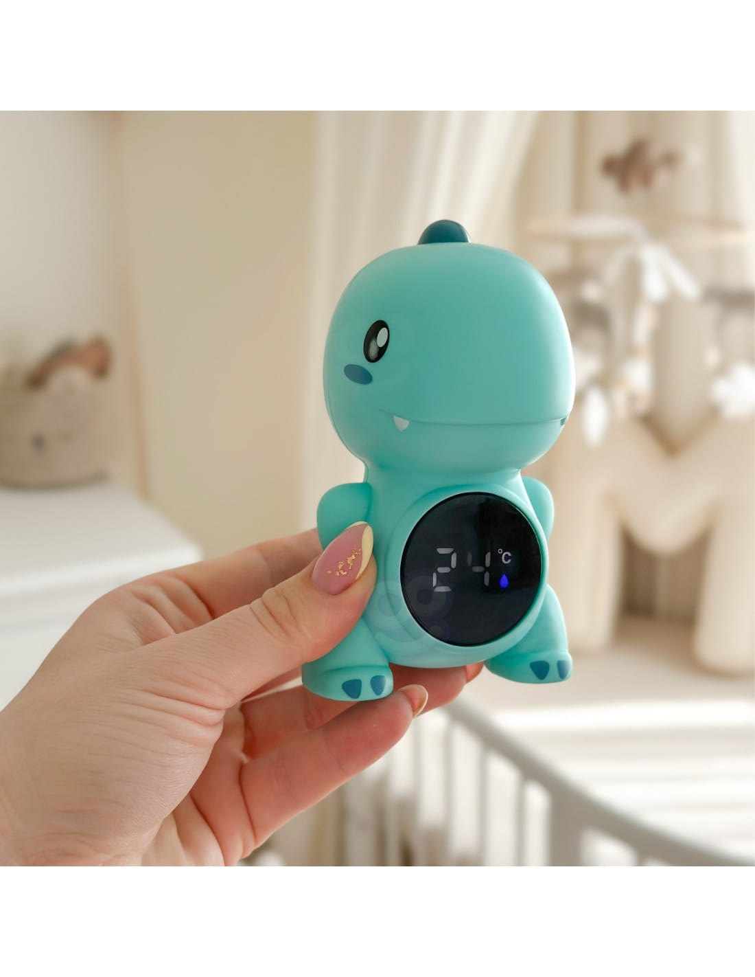 Ta večfunkcijski termometer je enostaven za uporabo in se popolnoma prilega vsakodnevnim rutinam, kot so kopanje ali preverjanje temperature prostora, kar ga naredi nepogrešljivega v otroški opremi.