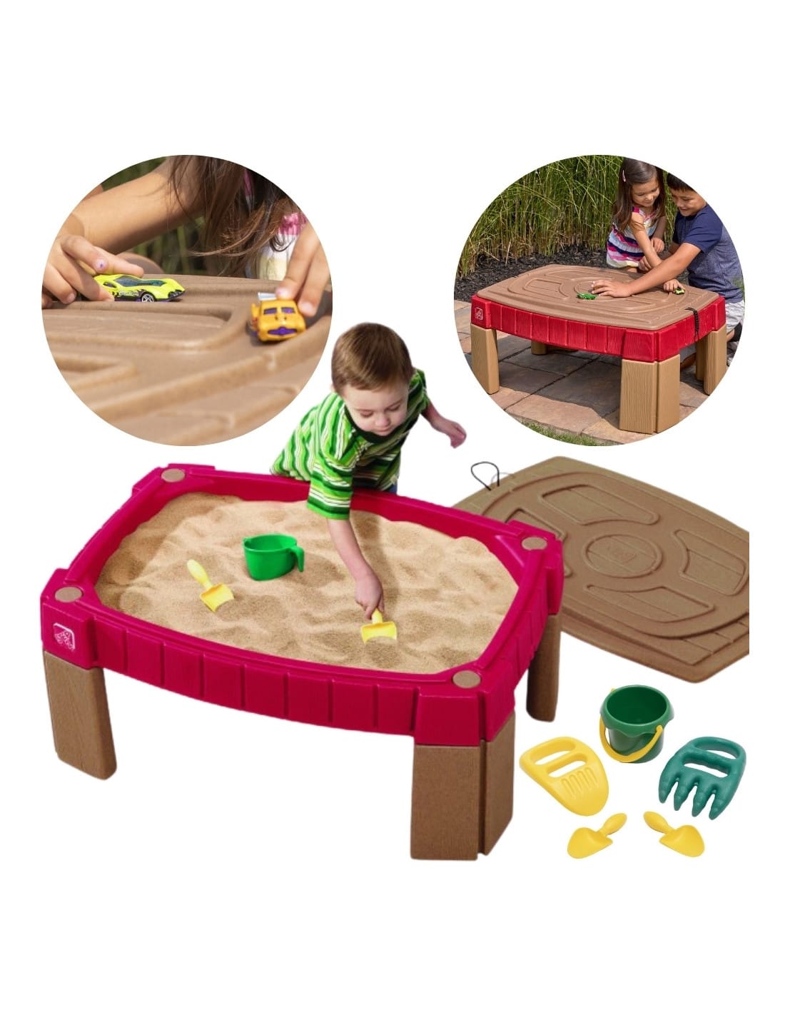 STEP2 velik peskovnik – miza s pokrovom in avtomobilskim poligonom je inovativna rešitev za kreativno in poučno igro vašega otroka. Z dvignjeno zasnovo na štirih nogah omogoča enostavno premikanje in je primerna tako za zunanjo kot notranjo uporabo. Peskovnik lahko napolnite s peskom (do 35 kg), makarončki, grahom ali kinetičnim peskom, kar zagotavlja raznolike možnosti igre in bogate senzorične izkušnje. Pokrov ščiti vsebino pred umazanijo in vremenom ter vključuje izrezljan avtomobilski poligon, ki malčkom omogoča zabavno igro z vozili. Komplet vsebuje vedro, dve lopatki in dve grabljici za dodatno ustvarjalnost. Zasnova in materiali so prilagojeni otrokom, kar zagotavlja varno in dolgotrajno uporabo.