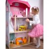 Hiška je bogato opremljena z lesenim pohištvom, ki prinaša toplino in realističen pridih v vsako sobo. Odlično se ujema z različnimi figuricami in punčkami, kar omogoča otrokom odigravanje številnih družinskih in zabavnih scenarijev. Izdelana je iz kakovostnega lesa in pobarvana z varnimi, netoksičnimi barvami.