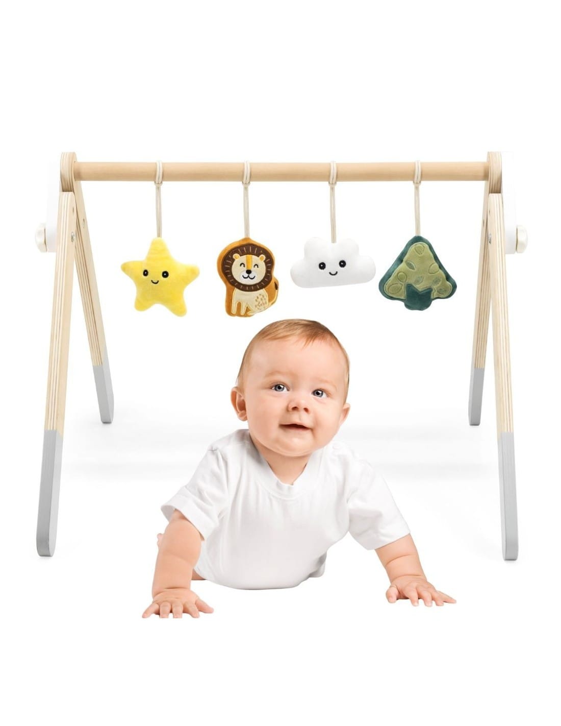 VIGA PolarB lesen igralni lok za dojenčke – Baby Gym je popoln pripomoček za prve trenutke igre in raziskovanja vašega malčka. Ta stabilen igralni lok vključuje interaktivne viseče igrače, ki s svojim gibanjem, ropotanjem, šelestenjem in piskanjem spodbujajo otrokovo pozornost ter hkrati razvijajo njegove motorične in kognitivne spretnosti.