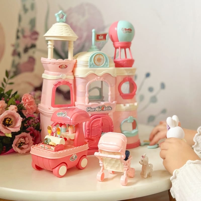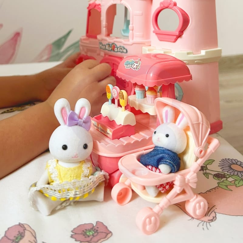 Vila ponuja veliko priložnosti za raziskovanje: malček zajčka se lahko vozi v svojem ljubkem roza vozičku, s prijatelji uživa v sladkih dobrotah iz vozička s sladoledom ali pa se zaziblje na notranji gugalnici. Na vrhu vile se bohoti balon, ki dodaja igriv pridih in spodbuja domišljijo otrok.