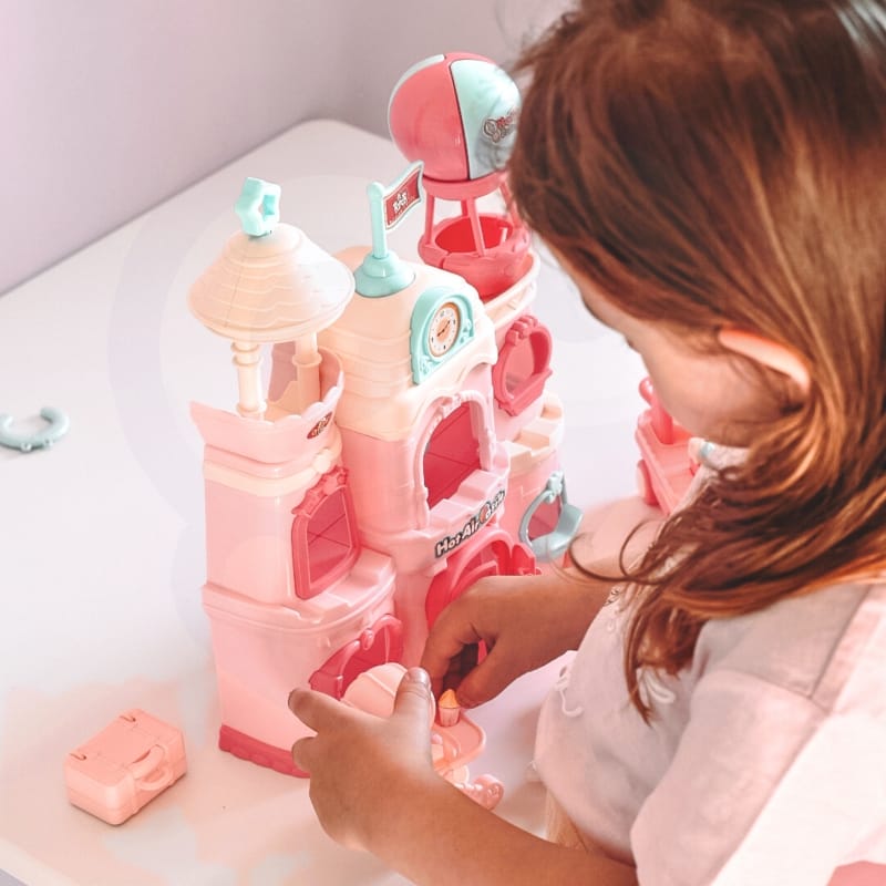 Dodatki, kot so kovček, rogal za spanje, mali fotoaparat in drugi drobni detajli, omogočajo ustvarjanje raznolikih zgodb in scenarijev, ki otrokom pomagajo razvijati socialne spretnosti, koordinacijo rok in oči ter logično razmišljanje.