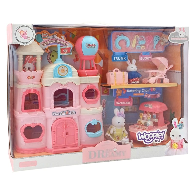 WOOPIE Vila zajčkov je pravljična hiška za lutke, ki odpira vrata v svet domišljijske igre. Trije nadstropji, polni barvitih detajlov in dodatkov, spodbujajo ustvarjalnost in urice zabave. V kompletu sta mama in mladiček zajček ter njun zvesti kužek. Malček zajčka ima prikupen roza voziček, poleg tega pa set vsebuje tudi kovček, voziček s sladoledom in druge dodatke za nepozabne igre vlog. Celoten opis ↓